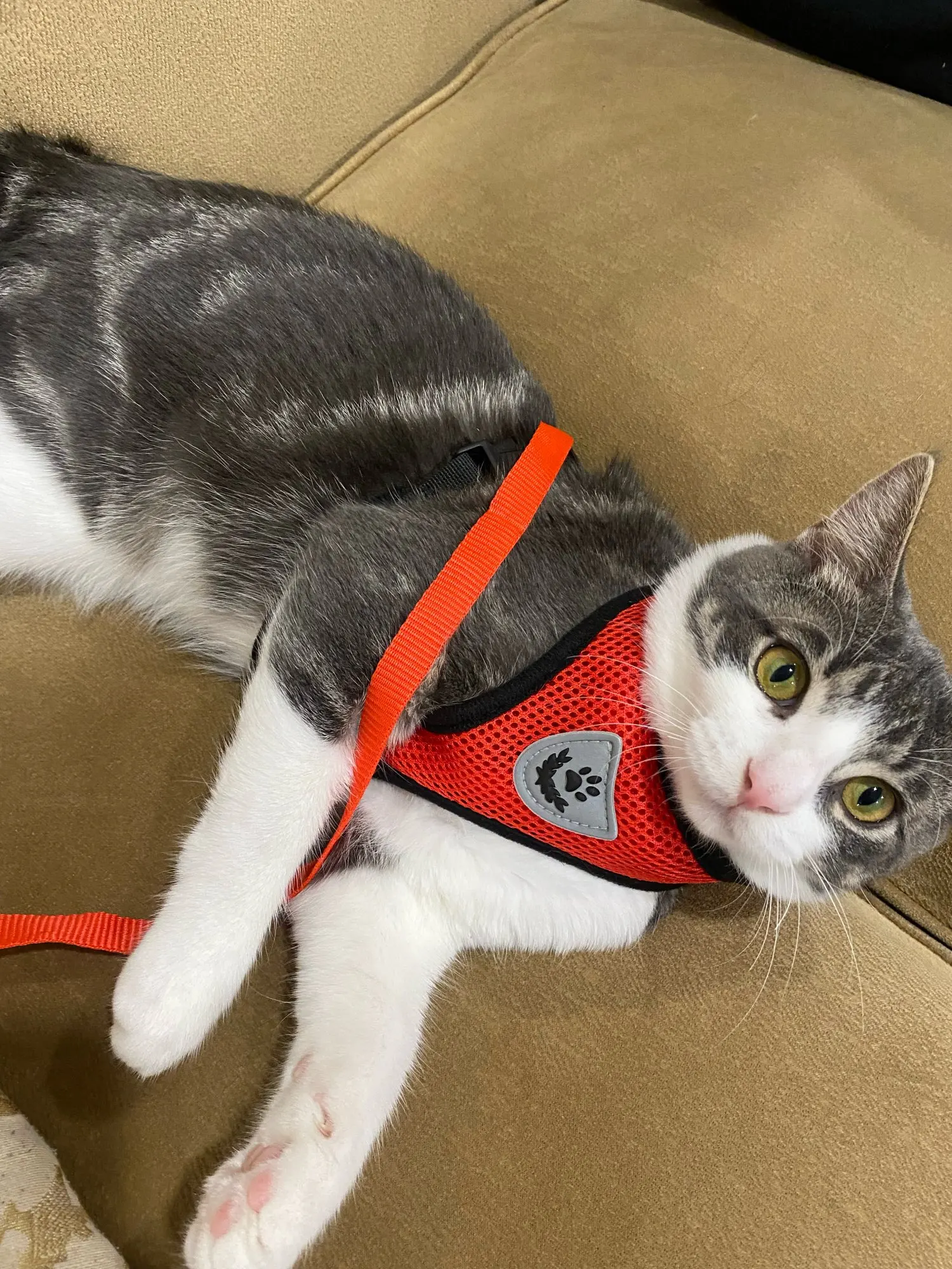 Imbracatura davvero bella, si adatta perfettamente al mio gatto e così bene. Buon materiale & buona qualità. Facile da regolare e indossare. Spedizione veloce ricevuta. Consiglio vivamente
